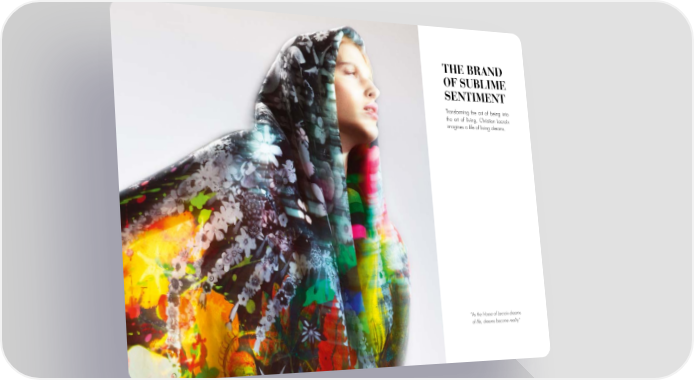 THE BRAND OF SUBLIME SENTIMENT Transforming the art of being into the art of living, Christian Lacroix imagines a life of living dreams. “As the House of Lacroix dreams of life, dreams become reality”