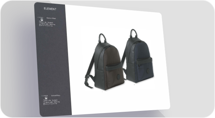 ELEMENT 1 LTR825T Element Khaki � 8 Sac a dos - Backpack 1J. Housse nylon / Nylon bag [J 300 x 160 x 400 mm 2 LTR825N Element Navy � 8 Sac a dos - Backpack 1J. Housse nylon / Nylon bag [J 300 x 160 x 400 mm