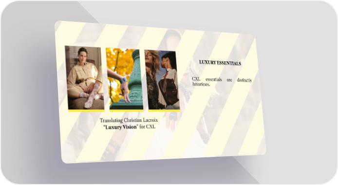 LUXURY ESSENTIALS CXL essentials are distinctly luxurious. Translating Christian Lacroix “Luxury Vision” for CXL