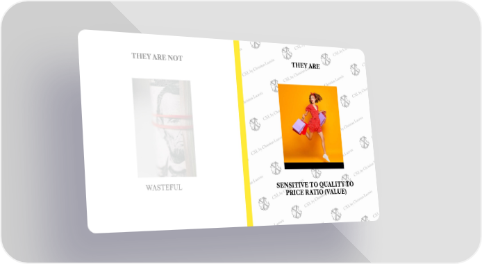 CXL by Christian Lacroix | Brandbook Public Page 28 Page 30THEY ARE NOT THEY ARE WASTEFUL SENSITIVE TO QUALITY TO PRICE RATIO (VALUE)