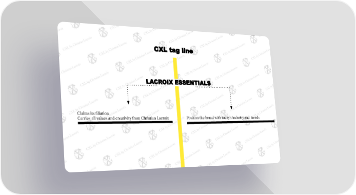 CXL tag line LACROIX ESSENTIALS Claims its filiation Position the brand with today’s industry and trends Carries all values and creativity from Christian Lacroix