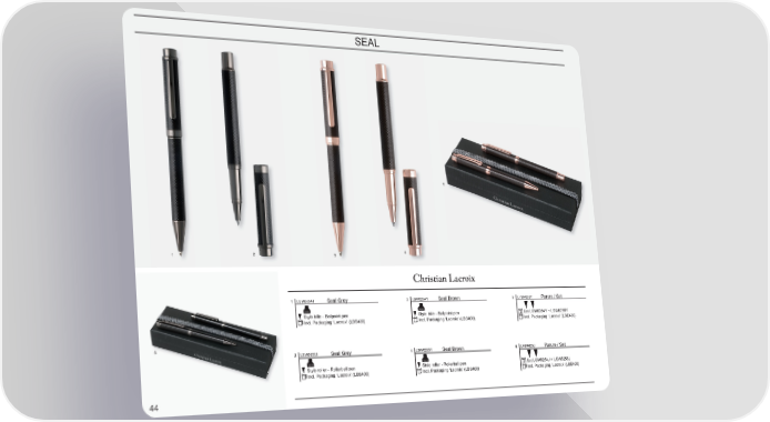 SEAL 5 1 2 3 4 1 LSW6254J Seal Grey 3 LSW6254Y Seal Brown 5 LPBR625Y Parure / Set Stylo bille - Ballpoint pen Stylo bille - Ballpoint pen Set LSW6254Y + LSW6255Y Incl. Packaging ‘Lacroix’ (LBS400) Incl. Packaging ‘Lacroix’ (LBS400) Incl. Packaging ‘Lacroix’ (LBE400) 6 2 LSW6255J Seal Grey 4 LSW6255Y Seal Brown 6 LPBR625J Parure / Set Stylo roller - Rollerball pen Stylo roller - Rollerball pen Set LSW6254J + LSW6255J Incl. Packaging ‘Lacroix’ (LBS400) Incl. Packaging ‘Lacroix’ (LBS400) Incl. Packaging ‘Lacroix’ (LBE400) 44